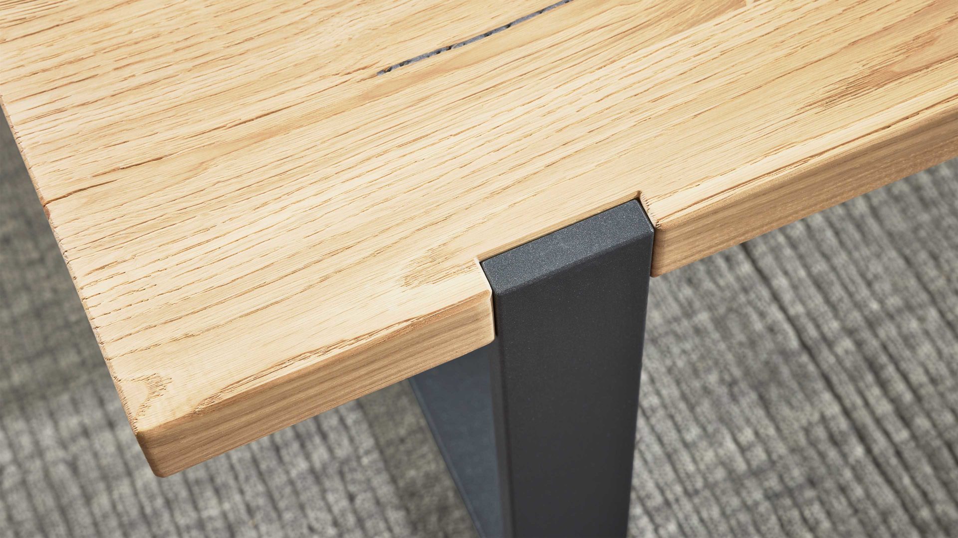 Die Bettbank aus der Interliving Schlafzimmer Serie 1029 verbindet ein in Eisenglimmer pulverbeschichtetes Metallgestell mit einer Sitzfläche aus hochwertigem Wildeiche-Massivholz. Dieser ausdrucksstarke Materialmix verleiht der Bank eine moderne, zugleich natürliche Ausstrahlung.