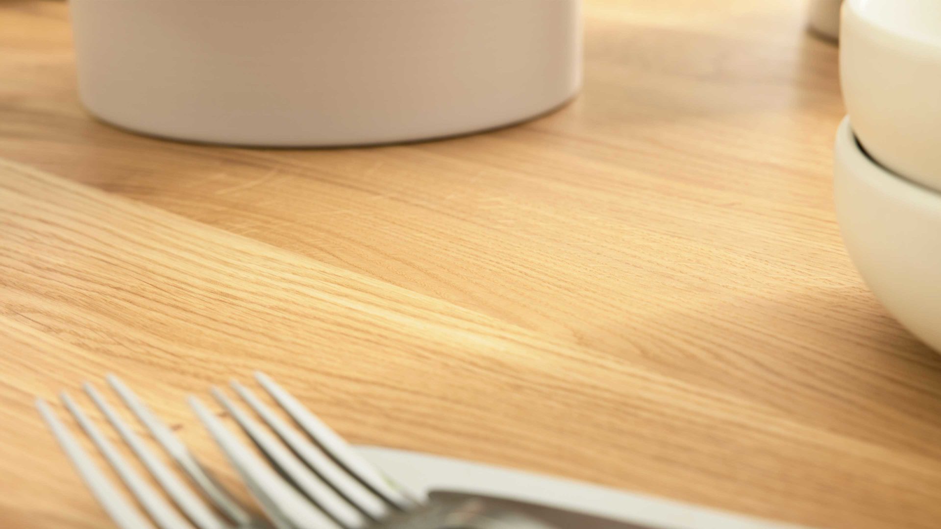 Ergänze Stühle mit einem von neun Tischmodellen in sechs Größen – wahlweise mit Platten aus Glas, Glas-Keramik oder HPL mit 3D-Struktur, mit oder ohne Ausziehfunktion. Auch Couchtisch-Ausführungen sind erhältlich.