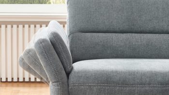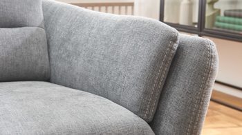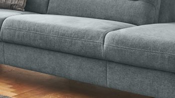 stahlfarbener Stoffbezug mit beiger Kontrast-Doppelsteppnaht