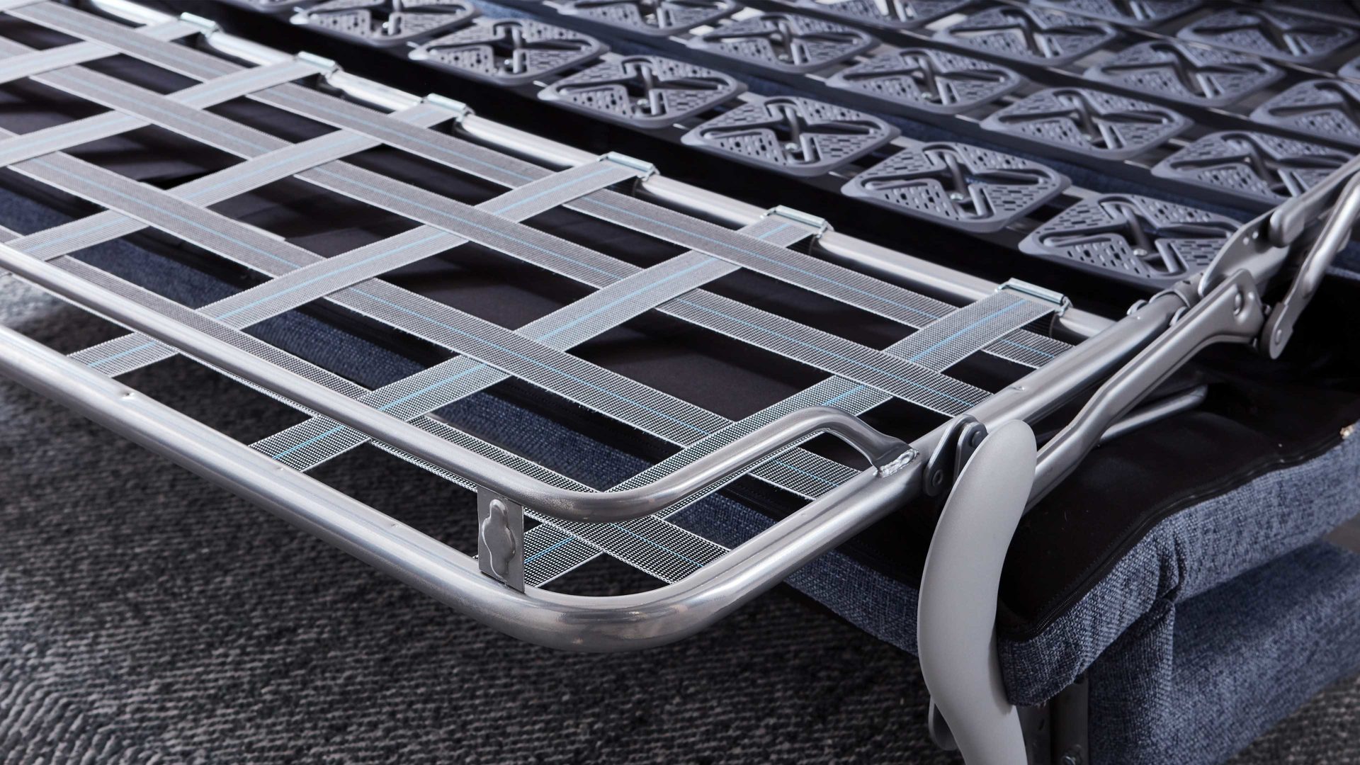 Das Schlafsofa Grande ist die perfekte Lösung für alle, die auf der Suche nach einem stilvollen und funktionalen Möbelstück sind. Mit seinem graublauen Stoffbezug und den chromfarbenen Metallzylinderfüßen ist es nicht nur ein Blickfang in jedem Raum, sondern auch äußerst bequem.