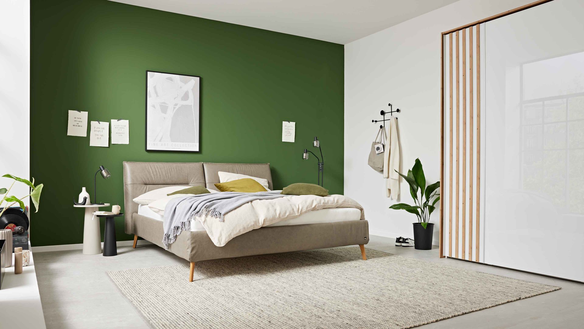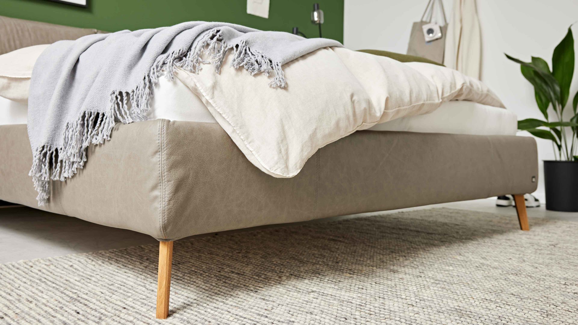 Darüber hinaus bietet die Serie elf Fußvarianten in unterschiedlichen Farben und Höhen, mit denen du dein Bett individuell gestalten kannst. Optional ist das Bett auch mit einem praktischen Bettkasten erhältlich – perfekt, um Decken, Kissen oder saisonale Textilien stilvoll und platzsparend zu verstauen.