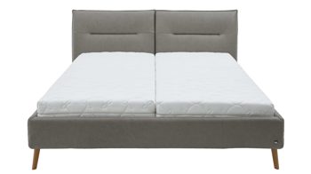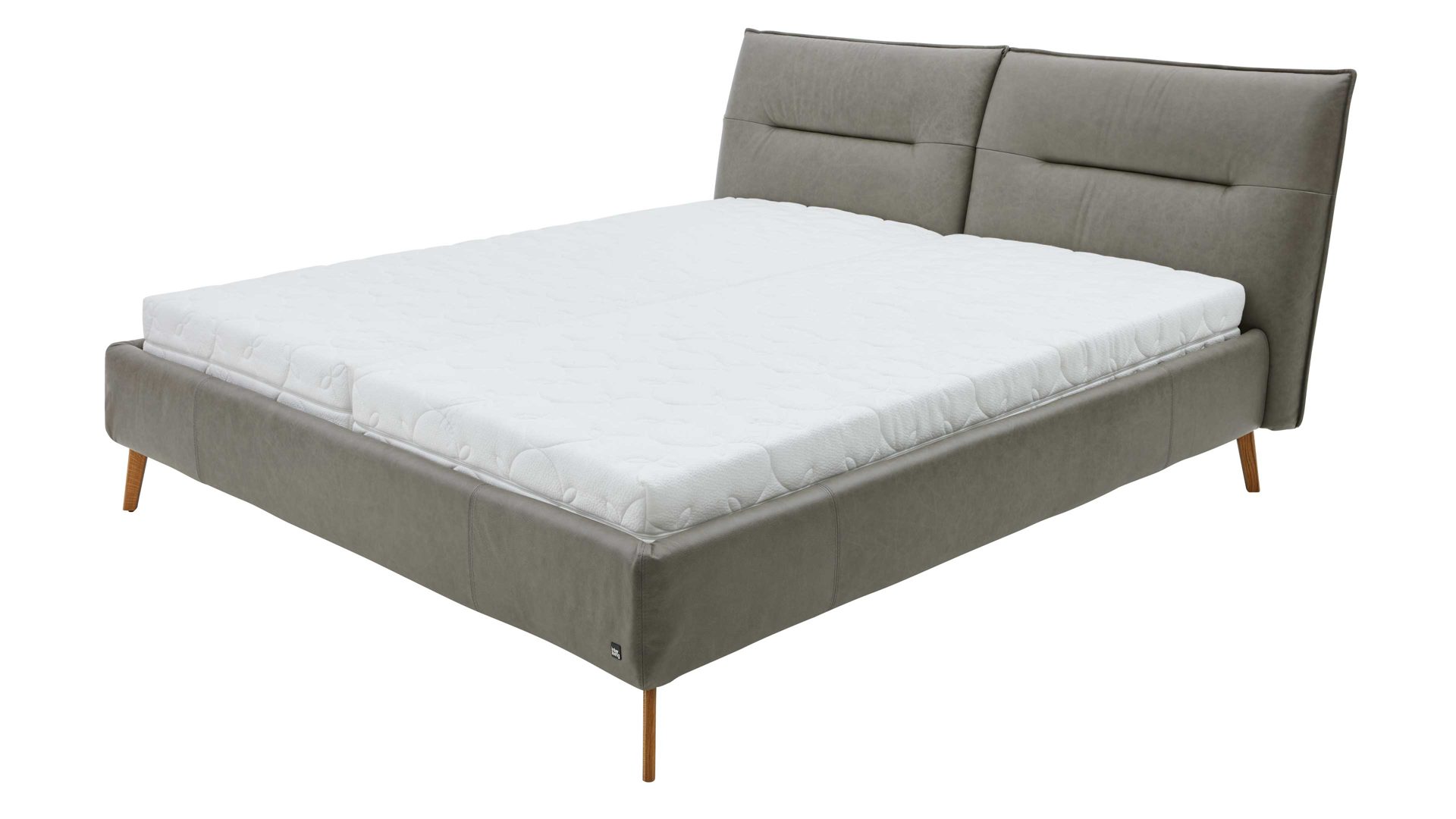 Ein elegantes Highlight ist das geteilte Polsterkopfteil, das mit einem umlaufenden Keder und einer Rückseite im Originalstoff überzeugt. Damit eignet sich das Bett perfekt auch für eine freistehende Platzierung im Raum – ideal für moderne Schlafzimmer mit offenem Wohncharakter.