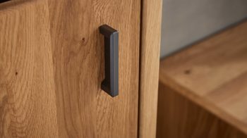Die vierteilige Wohnwand aus der Interliving Wohnzimmer Serie 2027 verbindet modernes Design mit warmen Naturmaterialien. Die geölten Asteichefronten und Korpusse mit hochwertigem Asteichefurnier verleihen der Kombination eine natürliche, wohnliche Atmosphäre. Dunkle, marmorfarbene Akzente, graues Parsolglas und anthrazitfarbene, pulverbeschichtete Metallgriffe setzen edle Kontraste und runden das Gesamtbild mit einem eleganten, zeitlosen Look ab.