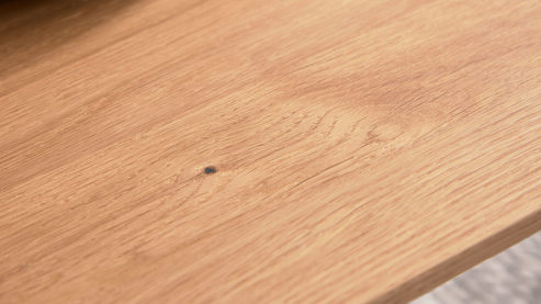 geöltes Eichenholz mit schwarz gefüllten Astlöchern