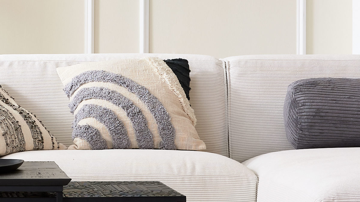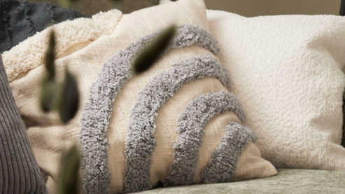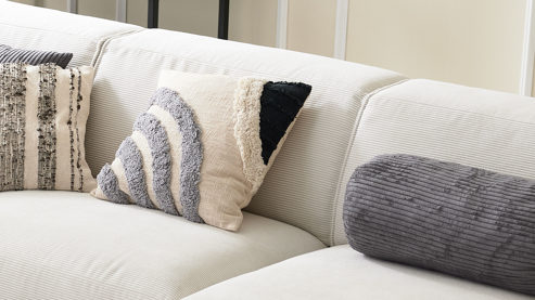 Kissenbezug mit getufteter, erhabender Vorderseite, unifarbener Rückseite und verdecktem Reißverschluss