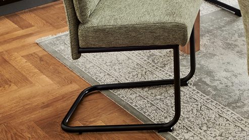 grüner Webstoffbezug, kombiniert mit mattschwarzem Eisen-Rundrohr