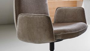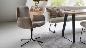 naturfarbener Stoffbezug, kombiniert mit matt schwarzem 4-Stern-Drehkreuz aus Metall