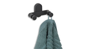 Organisieren Sie Ihr Badezimmer stilvoll und modern mit unserem hochwertigen Doppel-Wandhaken Alessio in eleganter, schwarzer Optik. Ideal zum Beispiel für kleinere oder größere Handtücher im Badezimmer. Zudem bietet er zuverlässigen Halt. Montage ganz nach Wunsch: Mit Schrauben (Montagematerial inklusive) oder auch ohne Bohren (Kleber müsste separat gekauft werden). Verleihen Sie Ihrem Badezimmer einen modernen Touch. Maße ca. 10 x 6 x 5 cm (BxHxT)