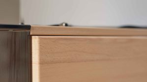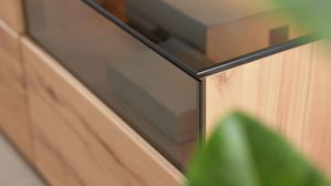 | Farbhinweis: | Balkenbuche Grau (getöntes Glas) Klarglas Aluminium (Griffe) Schwarz (Füße) | |
