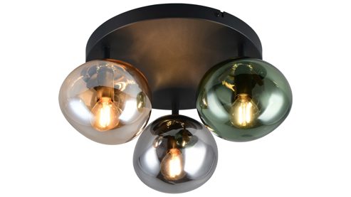 Die drei Glasschirme streuen das Licht angenehm und sorgen für eine wohnliche, harmonische Ausleuchtung. Mit ca. 39 cm Durchmesser und ca. 19 cm Höhe fügt sich die Wohnraum-Deckenlampe auch in kleinere Räume mühelos ein – stilvoll, zurückhaltend, trotzdem ein Blickfang.