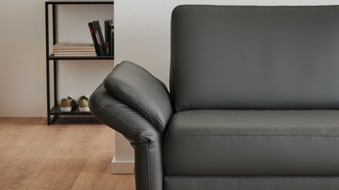 Als manuelle Zusatzfunktion lässt sich die Armlehne über einen integrierten Rasterbeschlag mehrfach in der Neigung verstellen. So können Sie die Armlehne bequem an Ihre bevorzugte Sitz- oder Relaxposition anpassen – ob als angenehme Armauflage, zum Anlehnen oder als Unterstützung beim Zurücklehnen. Durch die Verstellung verändert sich die Sofabreite dabei um bis zu 9 cm, was zusätzliche Flexibilität im Alltag schafft.