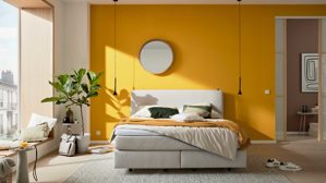 • Die Abbildung zeigt ein Wohnbeispiel, welches auch Dekoration sowie separat erhältliches Zubehör enthält. Im Lieferumfang enthalten ist ein Boxspringbett Ohio 2.0.
