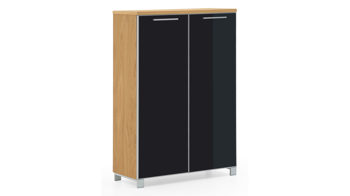 Eiche Bianco & anthrazitfarbenes Glas – eine Schublade, vier Türen