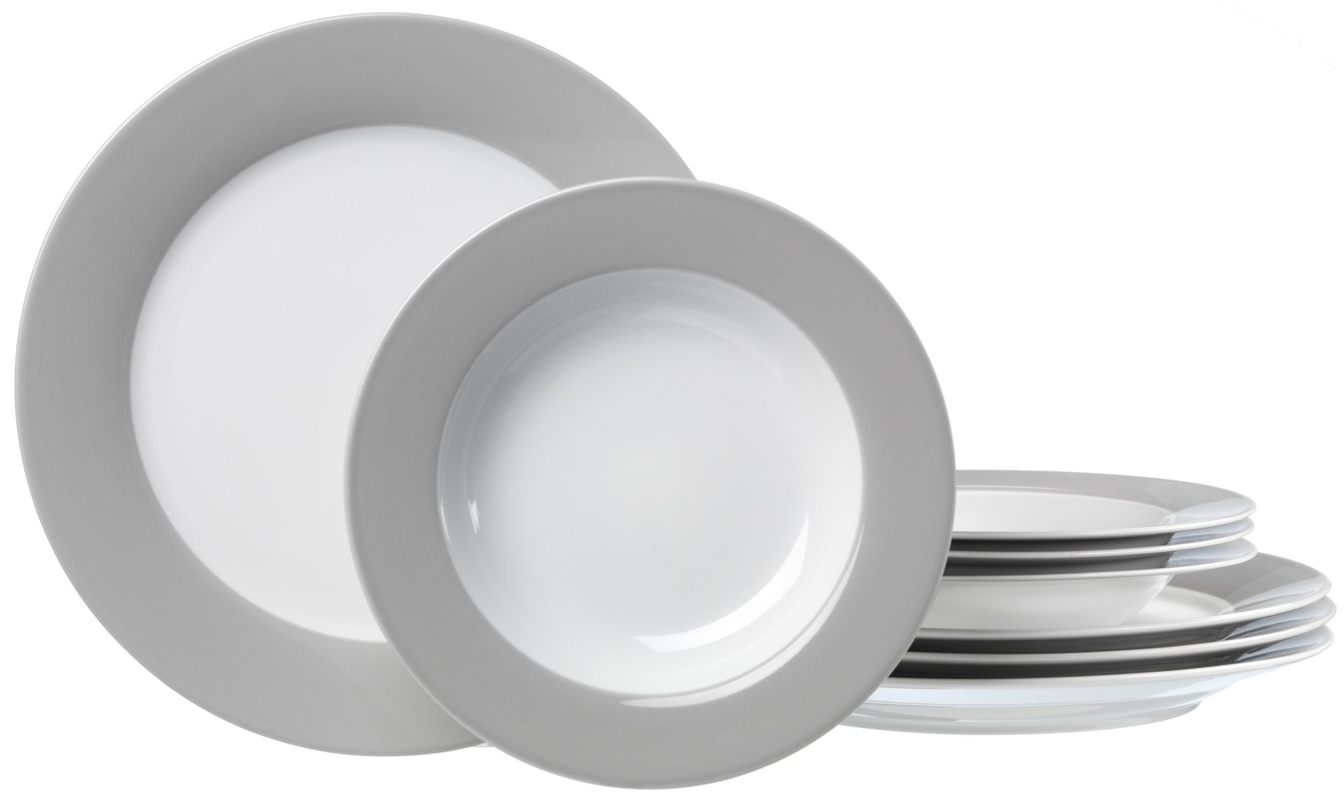 weißes Porzellan mit grauem Rand - achtteilig, Tafelgeschirr