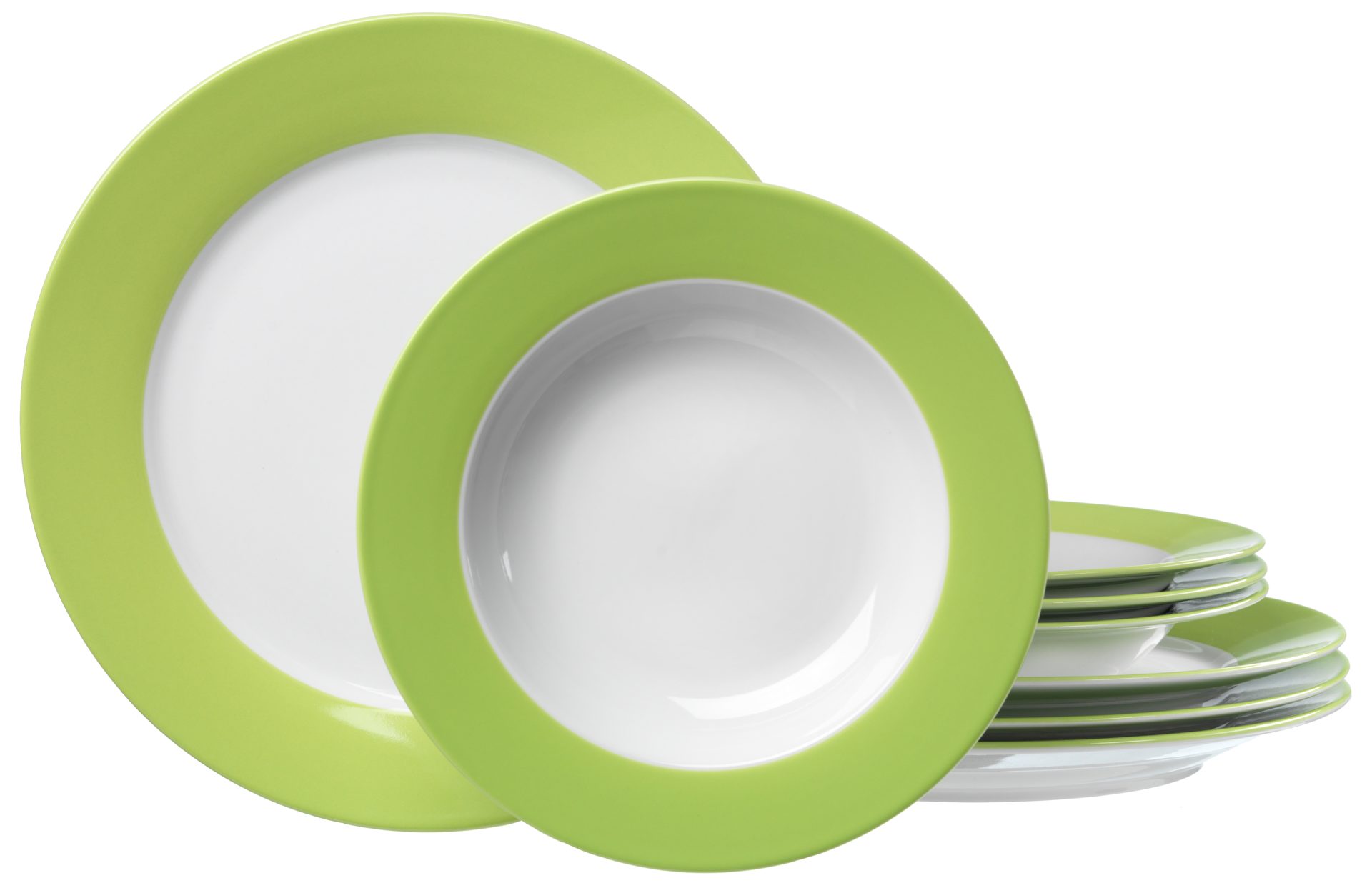weißes Porzellan mit grünem Rand - achtteilig, Tafelgeschirr