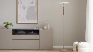 • Die Abbildung zeigt ein Wohnbeispiel, welches auch Dekoration sowie separat erhältliches Zubehör enthält. Im Lieferumfang enthalten ist eine Stehlampe.